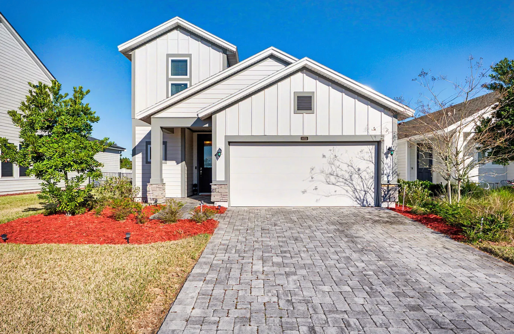 Single-family home built in 2020 within a gated community. Four bedrooms and three bathrooms with primary suite on the main level and adjacent laundry. Living area opens to an extended paver lanai with water view and fenced yard. Upper level includes loft, additional bedrooms, and bath. Located near community amenities, shopping corridors, and major roadways.