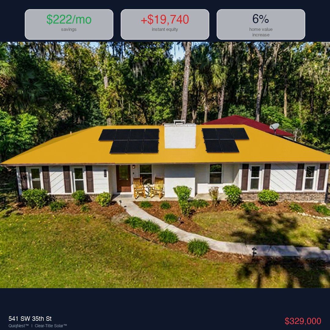 Most buyers add solar after closing - as a lease, a loan, or a lien. That creates a second payment, complicates your title, and builds zero equity. Buying solar at purchase puts it inside your mortgage before you close. No UCC-1 lien. Tax-deductible interest. Instant equity from day one. Most homes cannot do this. This one can.